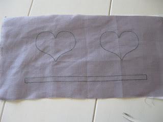 Well, that didn't work out too well! The heart in the upper left is not only in a bad place, it has a mistake, so the stitching wasn't lining up. Although the long rectangle is not so noticeable, it has the same problems. It was very important to follow the backstitch instructions exactly, so it will line up for finishing. There were some stitches over two, some over three, and a few over one. Working in-hand, because I was too lazy to tack it to stretcher bars, because I'd have to untack it and retack it later, made it very wrinkly. This is better: